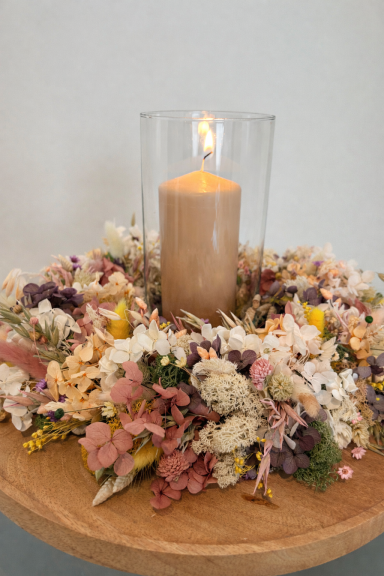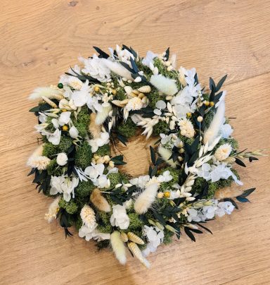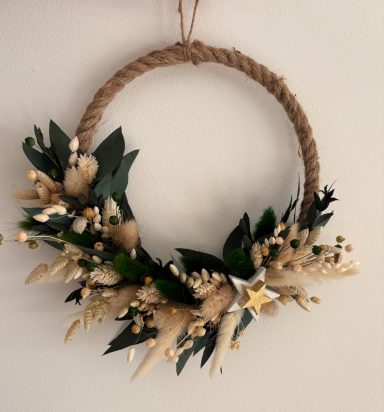 - Unter meiner Anleitung bindet ihr euren eigenen Trockenblumenkranz (egal ob zum Hinhängen oder Tischkranz). Wir stimmen im Vorfeld ab, was ihr binden möchtet.