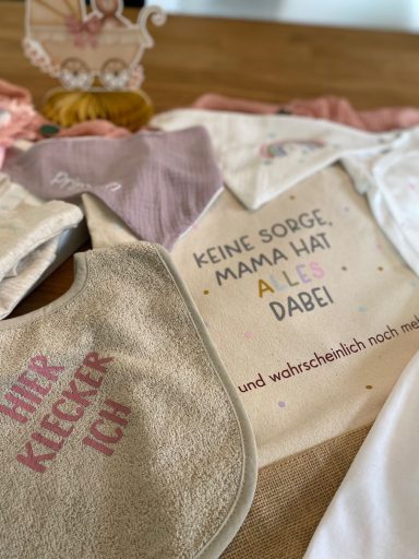 - Wir beplotten zusammen Rohlinge, die im Vorfeld abgestimmt werden (Kleidung, Taschen, Gläser etc.).
